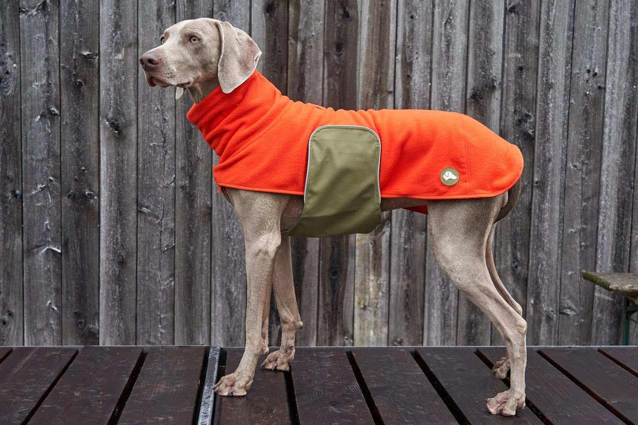 No matter whether Vizsla, Weimaraner, Rhodesian Ridgeback, Boxer, or Dalmatian. Our LUDWIG coat offers an ideal fit and sufficient freedom of movement for your dog. By the way, Charlie is wearing his LUDWIG sweater here with an orange chest band. He also has one in olive for changing.